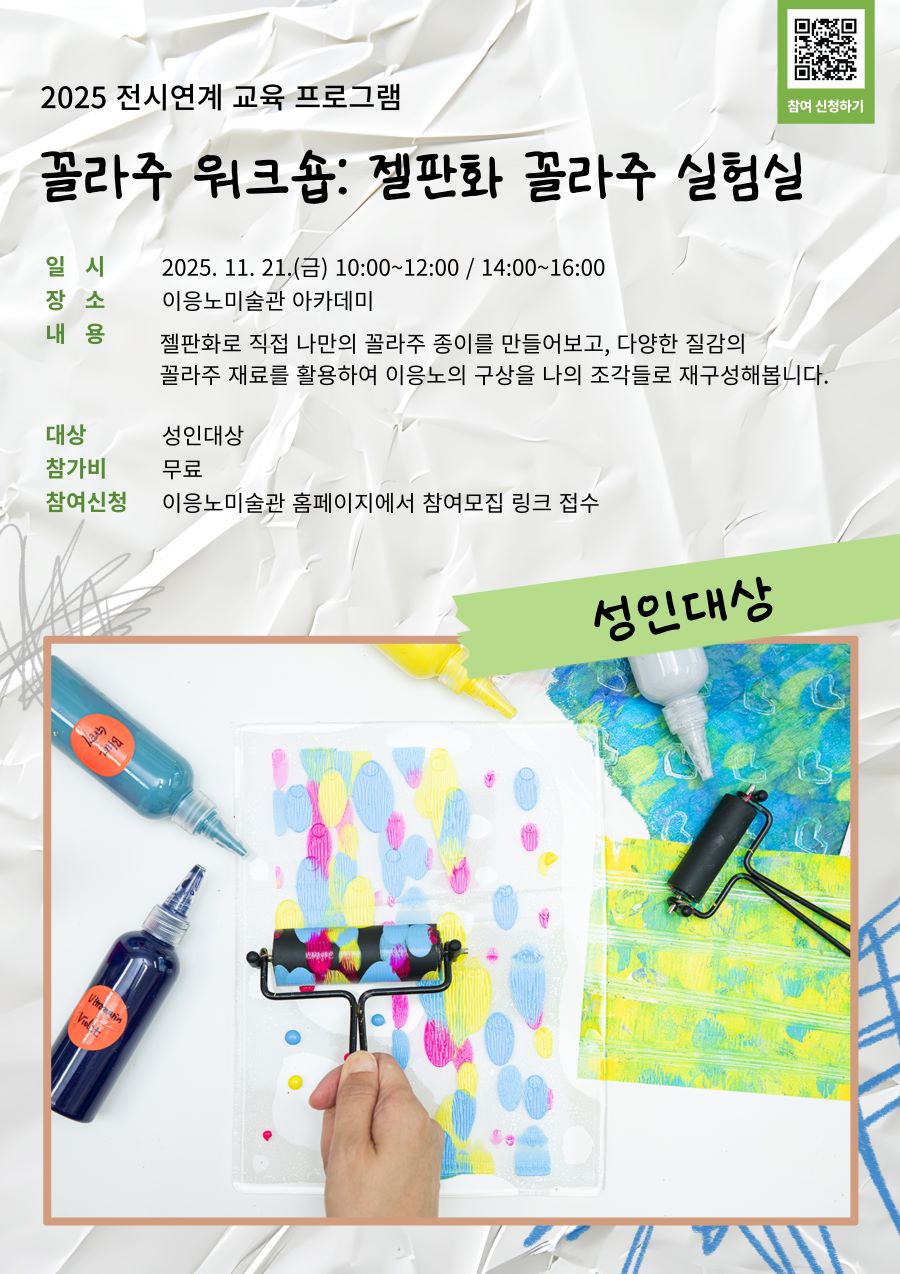 | 제목 | 2025 전시연계 교육 프로그램 <꼴라주 워크숍: 젤판화 꼴라주 실험실> 참여신청 - (성인대상) | ||